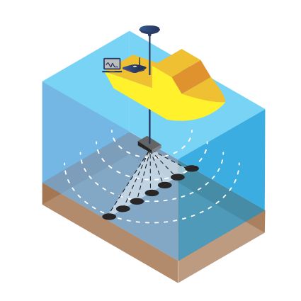 Levantamiento Batimetrico de gran resolución para determinar la topografia subacuatica.